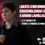 Appel commun* Nous appelons à un grand rassemblement public, le 17 janvier à partir de 9h devant le tribunal de Paris (75017), pour exprimer notre soutien à la journaliste de Disclose et dénoncer les attaques répétées du pouvoir contre le journalisme. Depuis plus de deux ans, la journaliste Ariane Lavrilleux est la cible des services […]